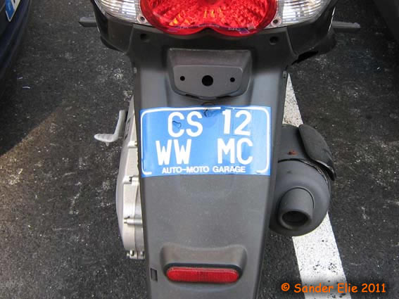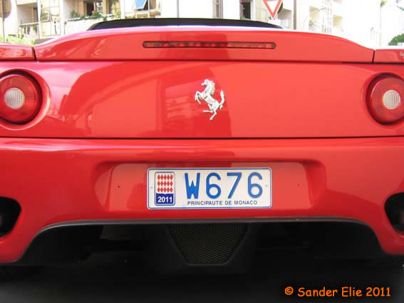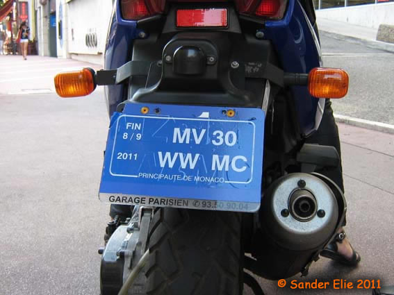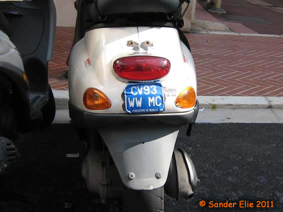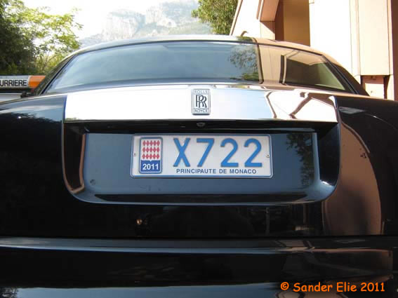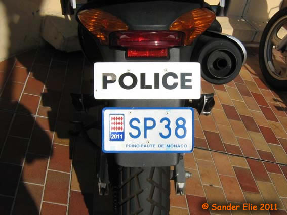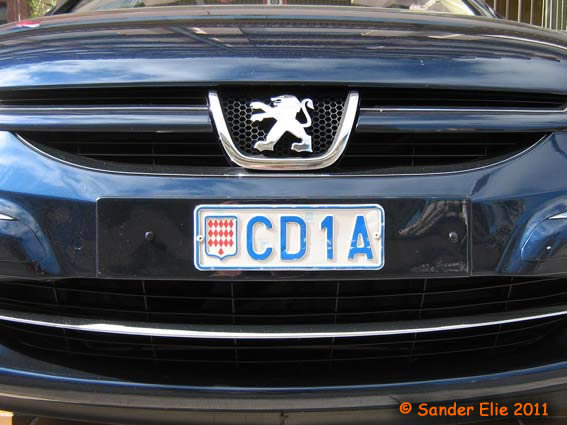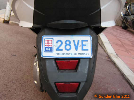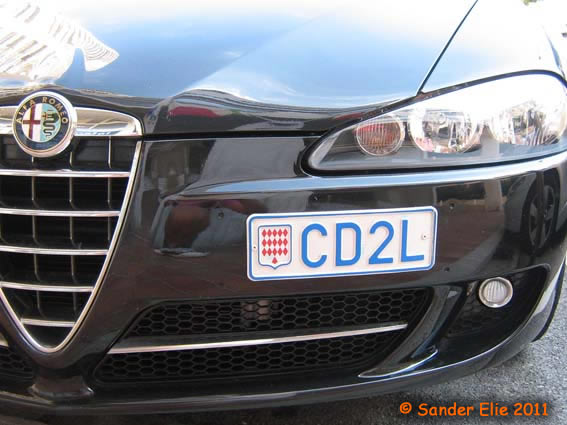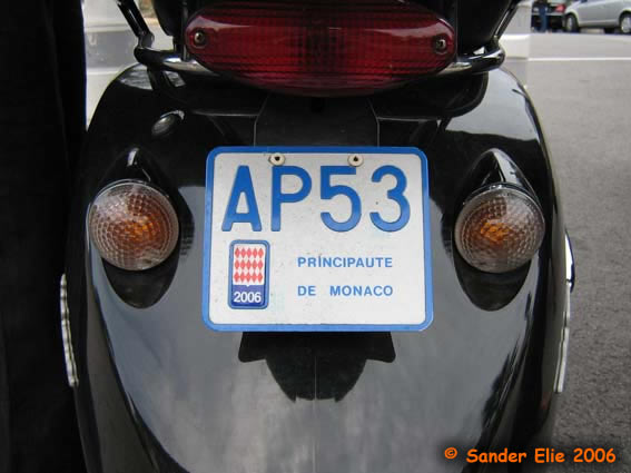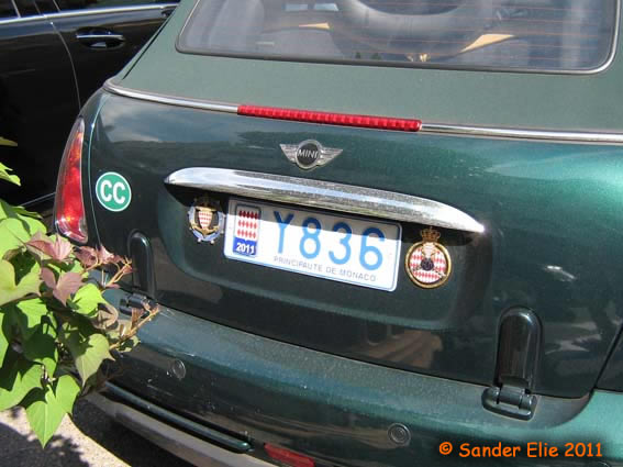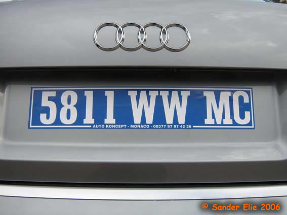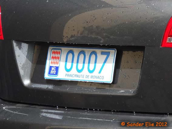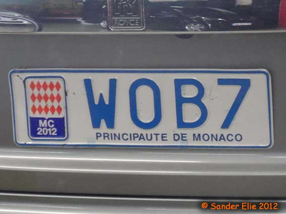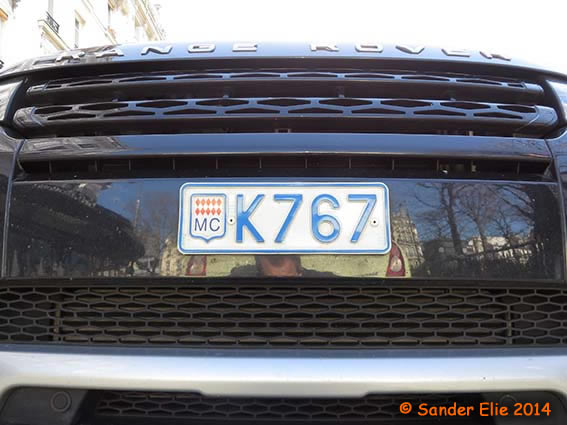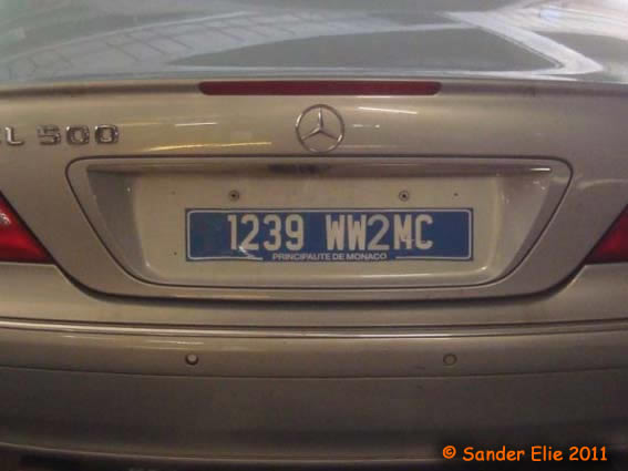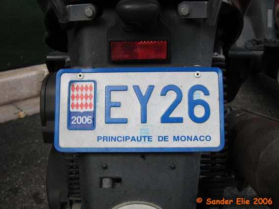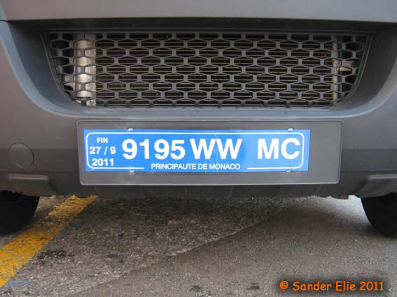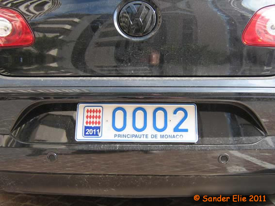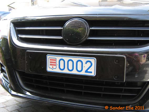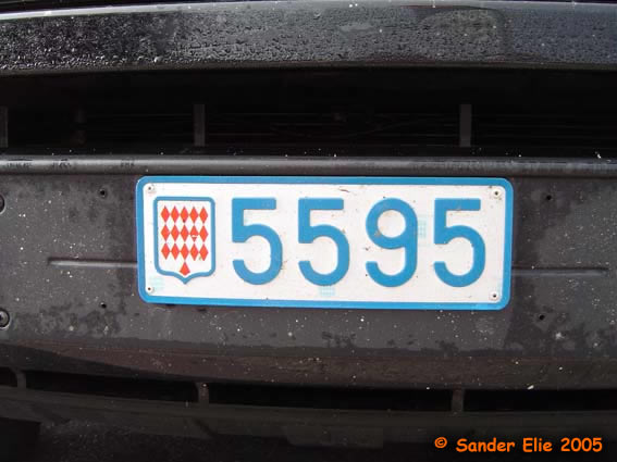 The Prince of Monaco has blue on white plates similar to the normal series, but on the left side is a royal crest instead of the coat of arms. The registration consists of the letters MC, MP or PM followed by two numbers.
